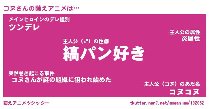 | 男性向けラノベタイトル風あだ名 | 『コヌの憂鬱』『ノーゲーム・ノーコヌ』 |