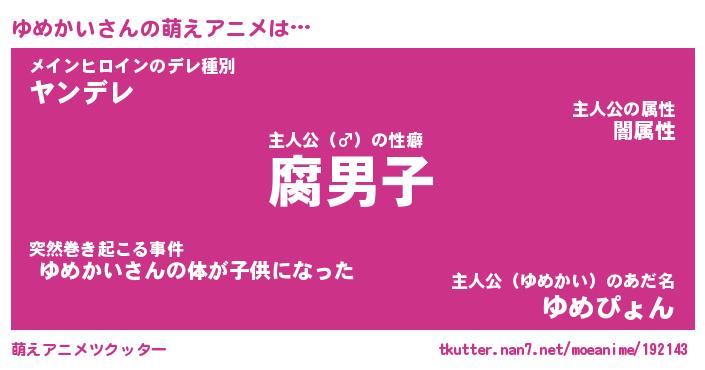 | ヘコむあだ名 | 『ゆめにー』『豆乳』『ゆめぷりん』 |