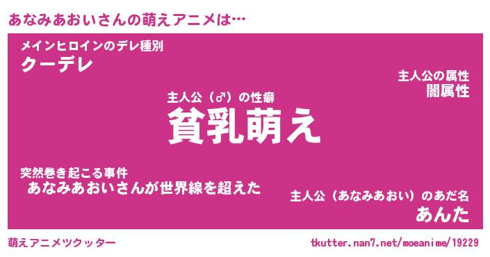 | ヒーロー風カッコイイあだ名 | 『スーパーアナミアオイ』『天弓騎士アナ』 |