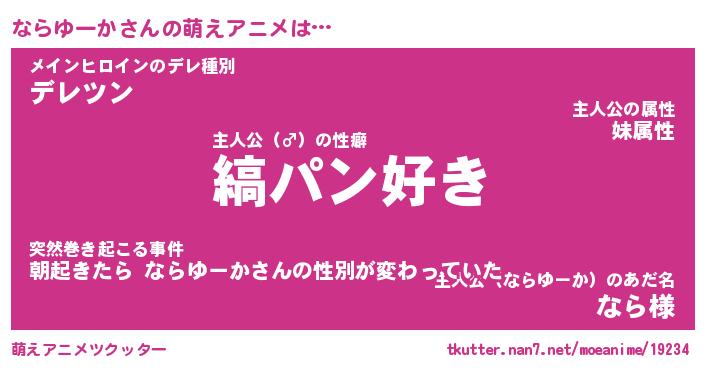 | 男性向けラノベタイトル風あだ名 | 『ならゆーかの憂鬱』 |
