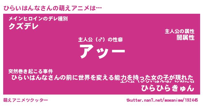 | 男性向けラノベタイトル風あだ名 | 『ヒライハンナアートオンライン』 |