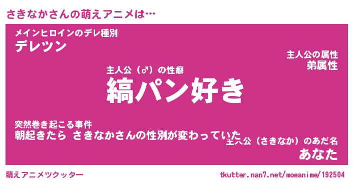 | 男性向けラノベタイトル風あだ名 | 『さきなかの憂鬱』 |