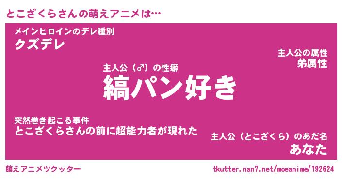 | ヒーロー風カッコイイあだ名 | 『スーパートコザクラ』『天弓騎士トコ』 |