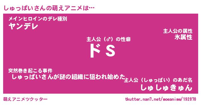 | 男性向けラノベタイトル風あだ名 | 『しゅっぱいの憂鬱』 |