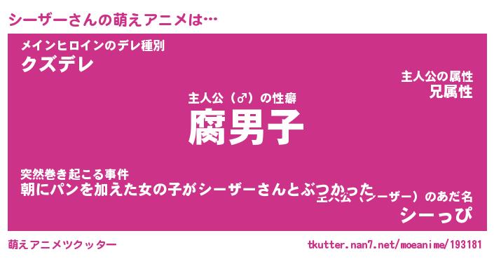 | ファンタジー風あだ名 | 『シーフェル』『エターナルシーザーー』 |