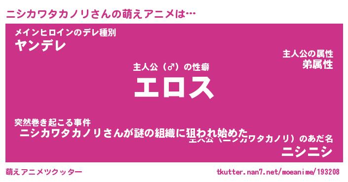 | 女子向けラノベタイトル風あだ名 | 『誰かこのニシカワタカノリを説明してください! ~契約から始まるウェディング~』 |