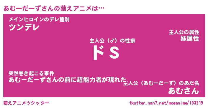 | 男性向けラノベタイトル風あだ名 | 『あむーだーずの憂鬱』 |