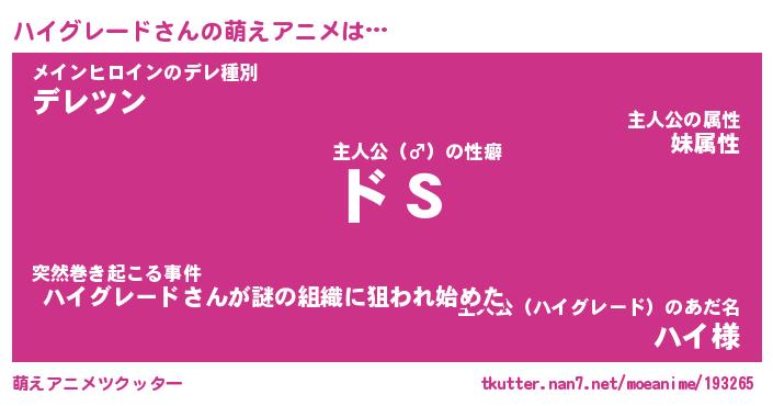 | ヒーロー風カッコイイあだ名 | 『スーパーハイグレード』『幻影騎士ハイ』 |