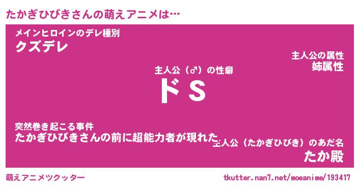 | 肩書あだ名 | 『たかぎひびき御曹司』 |