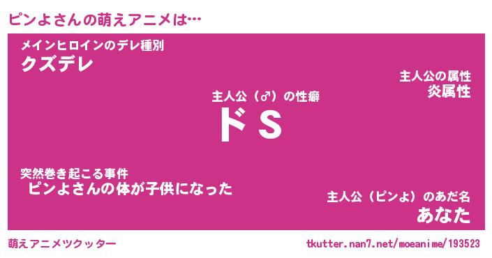 | 男性向けラノベタイトル風あだ名 | 『ピンよの憂鬱』 |
