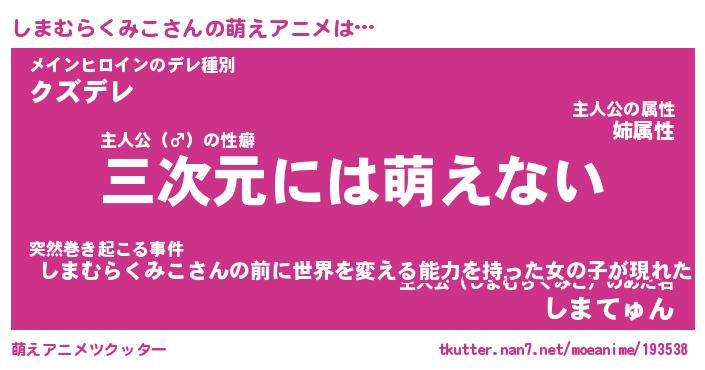 | 男性向けラノベタイトル風あだ名 | 『シマムラクミコアートオンライン』 |