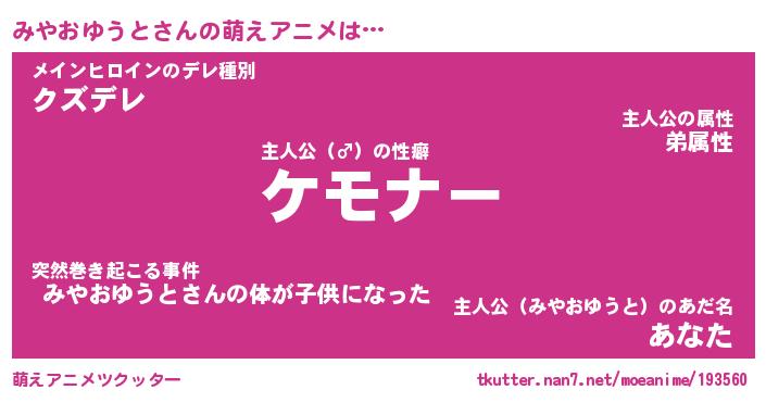 | 女子向けラノベタイトル風あだ名 | 『誰かこのみやおゆうとを説明してください! ~契約から始まるウェディング~』 |