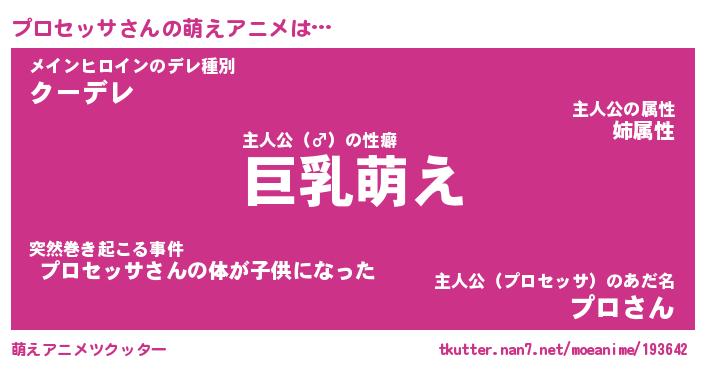 | 肩書あだ名 | 『プロセッサ社長令嬢』『プロセッサ班長』 |