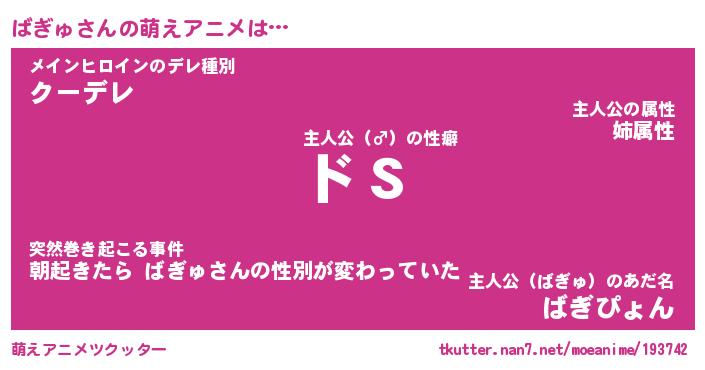 | 男性向けラノベタイトル風あだ名 | 『ばぎゅの憂鬱』 |
