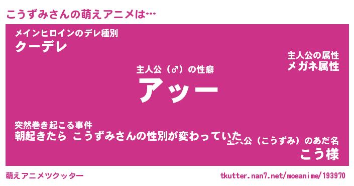 | 男性向けラノベタイトル風あだ名 | 『コウズミアートオンライン』 |