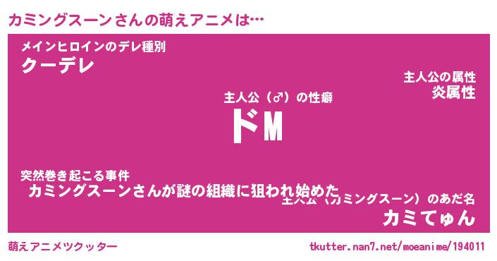 | 女子向けラノベタイトル風あだ名 | 『(仮)カミングスーンのやんごとなき事情』 |