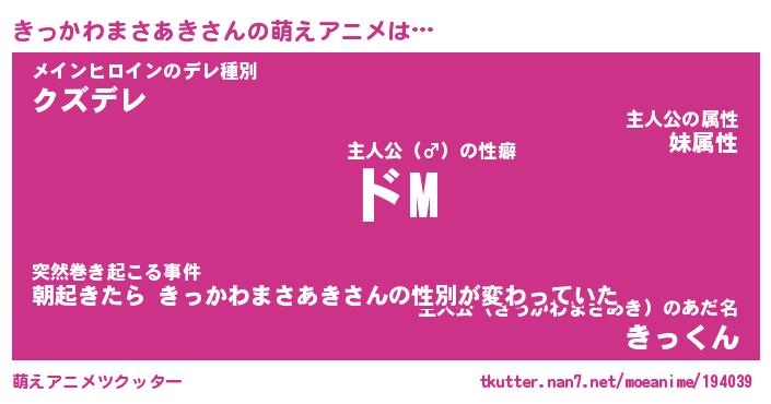 | 女子向けラノベタイトル風あだ名 | 『(仮)きっかわまさあきのやんごとなき事情』 |