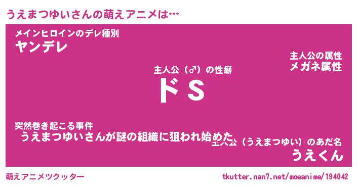 | 男性向けラノベタイトル風あだ名 | 『うえまつゆいの憂鬱』 |