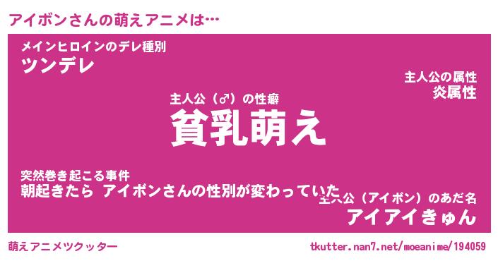 | 女子向けラノベタイトル風あだ名 | 『(仮)アイボンのやんごとなき事情』 |