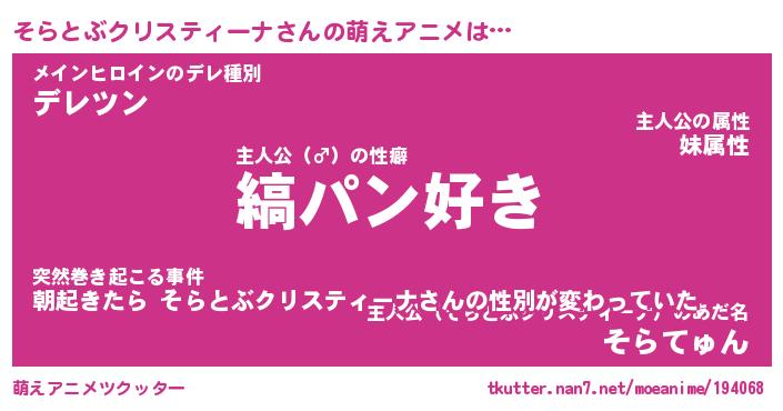 | 伝説のあだ名 | 『伝説のスナイパーそらとぶクリスティーナ』 |
