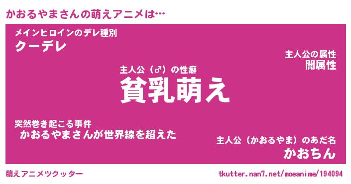 | 男性向けラノベタイトル風あだ名 | 『かおるやまの憂鬱』 |