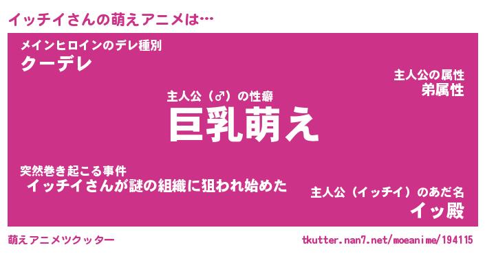 | 男性向けラノベタイトル風あだ名 | 『イッチイの憂鬱』 |