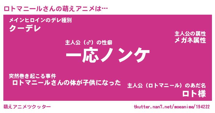 | 女子向けラノベタイトル風あだ名 | 『誰かこのロトマニールを説明してください! ~契約から始まるウェディング~』 |