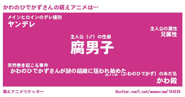 | 胡散臭い通販商品みたいなあだ名 | 『モテモテ間違いなしブレスレット…その名も「かわのひでかず」』 |