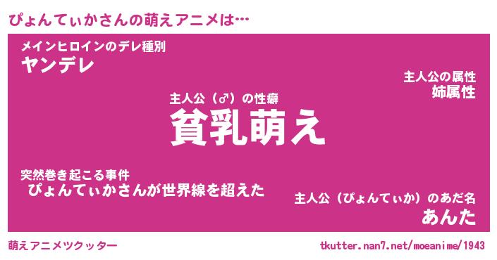 | 男性向けラノベタイトル風あだ名 | 『ぴょんてぃかの憂鬱』 |