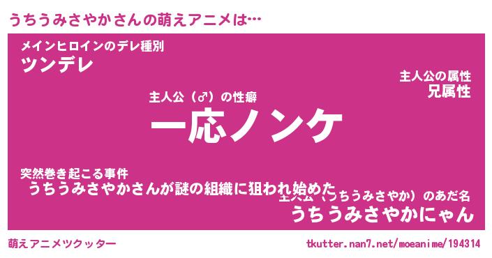 | 男性向けラノベタイトル風あだ名 | 『ウチウミサヤカアートオンライン』 |
