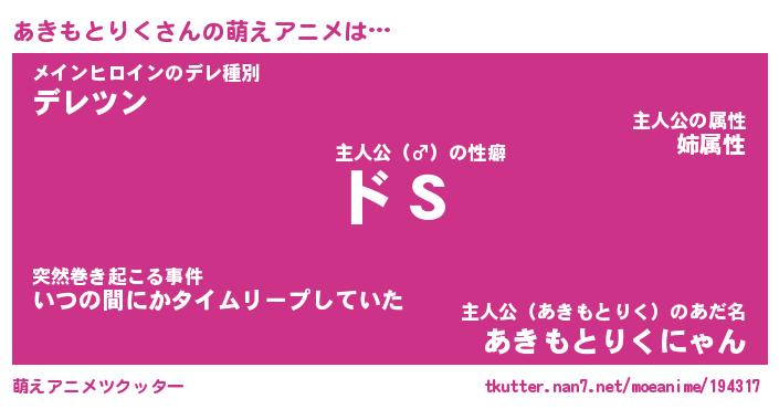 | 男性向けラノベタイトル風あだ名 | 『あきもとりくの憂鬱』 |