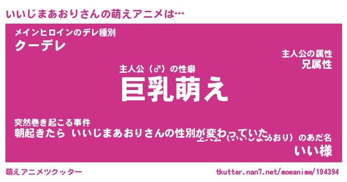 | 男性向けラノベタイトル風あだ名 | 『いいじまあおりの憂鬱』 |