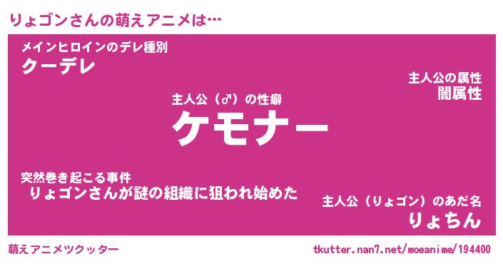 | 男性向けラノベタイトル風あだ名 | 『リョゴンアートオンライン』 |