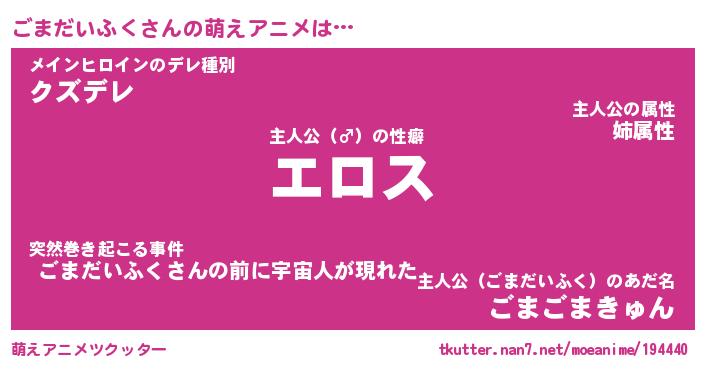 | 男性向けラノベタイトル風あだ名 | 『ゴマダイフクアートオンライン』 |