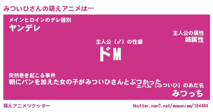 | 男性向けラノベタイトル風あだ名 | 『みついひの憂鬱』 |