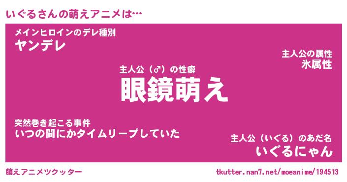 | 男性向けラノベタイトル風あだ名 | 『いぐるの憂鬱』 |