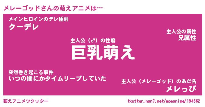 | 男性向けラノベタイトル風あだ名 | 『メレーゴッドの憂鬱』 |