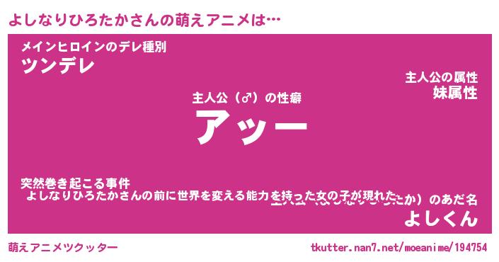 | 女子向けラノベタイトル風あだ名 | 『誰かこのよしなりひろたかを説明してください! ~契約から始まるウェディング~』 |