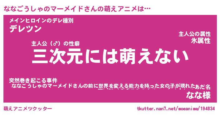 | 男性向けラノベタイトル風あだ名 | 『ナナゴウシャノマーメイドアートオンライン』 |