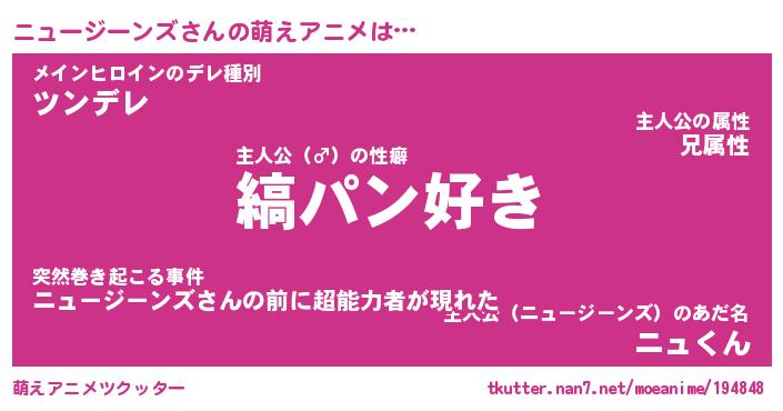 | 男性向けラノベタイトル風あだ名 | 『ニュージーンズの憂鬱』 |