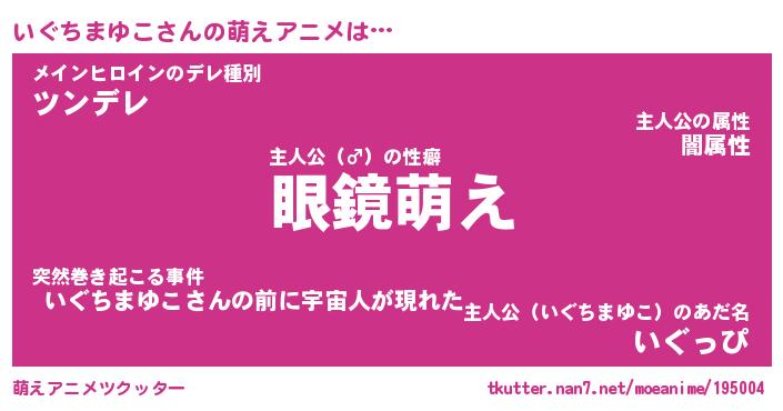 | 男性向けラノベタイトル風あだ名 | 『いぐちまゆこの憂鬱』 |