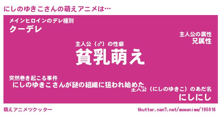 | 男性向けラノベタイトル風あだ名 | 『にしのゆきこの憂鬱』 |
