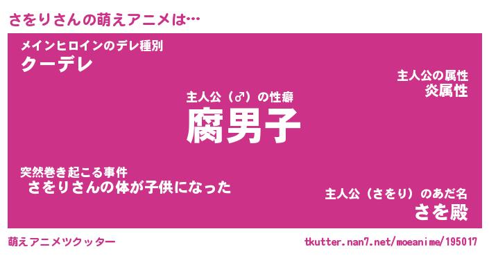 | 男性向けラノベタイトル風あだ名 | 『サヲリアートオンライン』 |