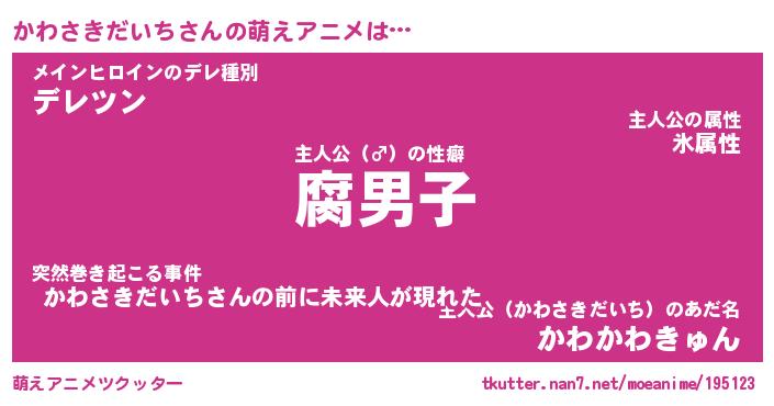 | 男性向けラノベタイトル風あだ名 | 『カワサキダイチアートオンライン』 |