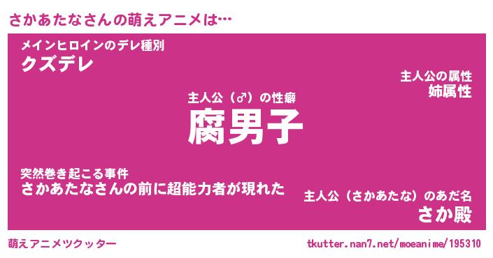 | 男性向けラノベタイトル風あだ名 | 『サカアタナアートオンライン』 |