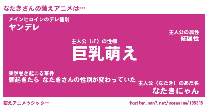 | 男性向けラノベタイトル風あだ名 | 『なたきの憂鬱』 |