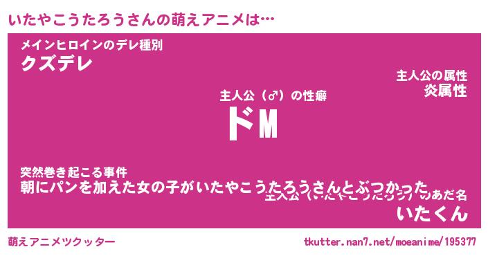 | ヘコむあだ名 | 『いたにゅー』『なまこ酢』 |