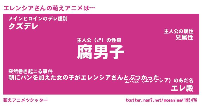| 料理風あだ名 | 『節約★エレンシアと油揚げの玉子丼』 |