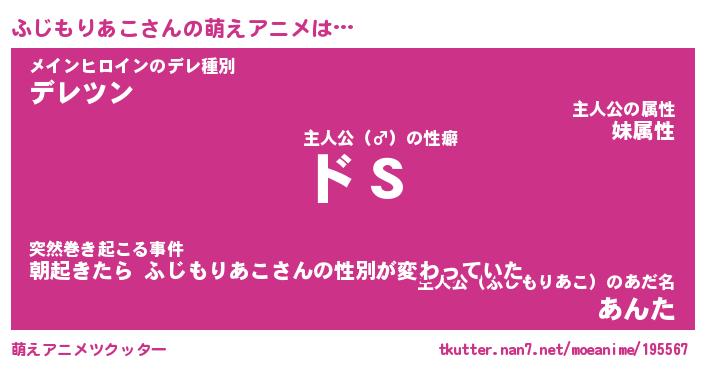 | 男性向けラノベタイトル風あだ名 | 『ふじもりあこの憂鬱』 |
