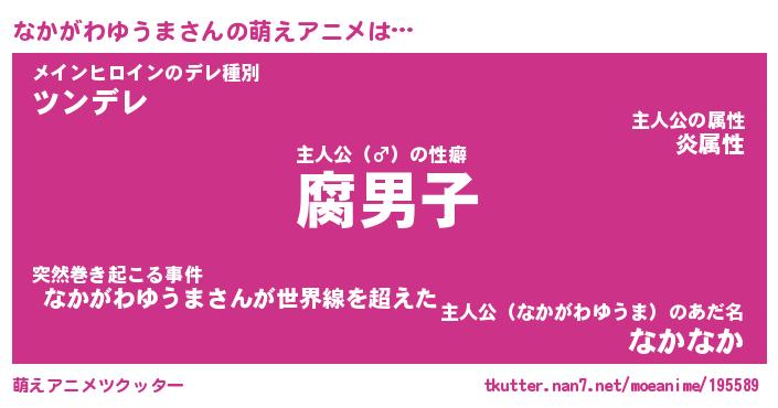 | 女子向けラノベタイトル風あだ名 | 『なかがわゆうま姫と円卓の騎士』 |